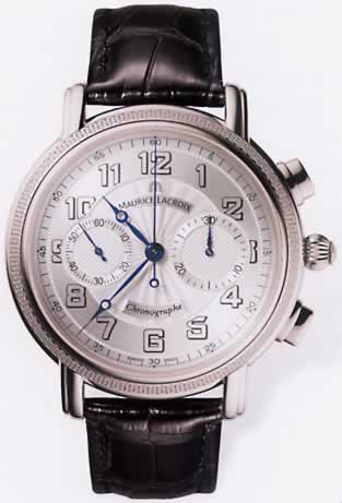 モーリス・ラクロアによって現代に蘇りリファインされた幅31mm、厚さ5.8mmのこのムーブメントは、106のパーツで構成され、手作業による装飾や丁寧な仕上げが施されています。18K(750)ゴールドのテンプ枠には穴石と受石がセットされ、テンプの振動数は、ゆったりとした18,000振動/時。正確に1/5単位で止まるストップウォッチ機能に加え、3時位置には30分計を備えています。また、5姿勢で調整され、40時間のパワーリザーブや、巻き上げや脱進・調速機の性能と構造、そして、その脱進・調速機がムーブメント全体と正確に機能しているかも確認されます。ちらネジ付き黄銅テンプ、スワンネック型の緩急針等、機械式時計の伝統的機構を存分に楽しむことができます。