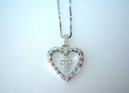 | 人気のハートの中にダイヤモンド入りクロスをプラスした、