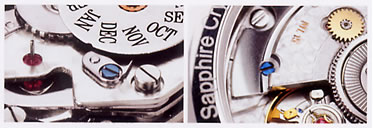マスターピースのデティール-300にも及ぶさまざまなパーツから作り出される魅力的な付加機能を付けて、みごとに装飾されたムーブメントはもちろん、手間隙のかかった趣向を凝らしたダイヤルや針、そして独特でありながらエレガントなケースから心地よいストラップにいたるまで−これらの一つ一つが、マスターピース・コレクションを比類なきものにしています。