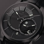 ムーブメントにはブラックの表面特殊処理を施し、ケースとダイヤルとの調和