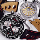 |  | PRS516 | 1970年代のスポーツカーのステアリングをモチーフとした、丸い穴の開いたストラップが印象的。ダイヤル上に浮かぶバーインデックス、ステアリングホイールをかたどったプレートもユニークなシースルーバック・・・ 70年代に一世を風靡したオリジナルの雰囲気はそのままに、プラスされたモダンさが見事に融合した個性的なモデルです。 |