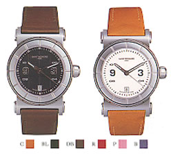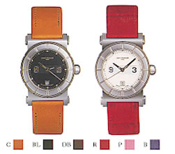 | | イタリア・ローマの古代建築をモチーフにデザインされた「コロッセオ」は、今までと違うテイストの時計。ケースや文字盤には煉瓦を積み上げたコロッセオを彷彿とさせる切り込みが入っています。また、ケースの上下のボタンを押すことで、ブレスレットを自分で取りかえられるのが特徴。メタルブレスをレザーバンドに、また、レザーバンドを他の色に替えるなど、1本の時計で違うルックスを楽しめます。 | | ※このモデルは、ケース上下のボタンを押すことによって、ブレスレットを簡単に取りかえられるのが特徴です。(クロコベルトに牛革の替えベルトが1本付きます。メタルブレスレットも展開しています。) | | 5気圧防水 クオーツ ステンレススチール サファイアクリスタル 牛革またはメタルブレスレット / ベルト色見本1 ベルト色見本2 |