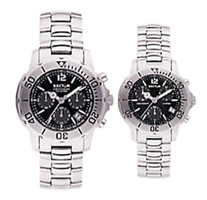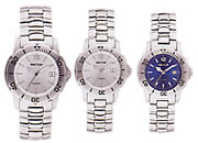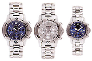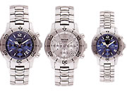 | 共通仕様 10気圧(100m)SS防水ケース(サテン仕上) クォーツ・ムーブメント(デイト付) 逆回転防止SSベゼル ミネラル強化ガラス SSブレスレット(安全ロック付) | クロノグラフ 60秒・60分・24時間・積算式 |