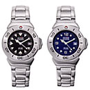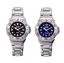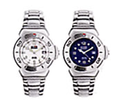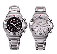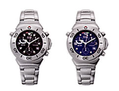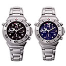 | 共通仕様 10気圧(100m)SS防水ケース(サテン仕上) クオーツ・ムーブメント(デイト付) 逆回転防止SSベゼル 捩じ込み式SSクラウン ミネラル強化ガラス 一体式SSブレスレット(安全ロック付) | クロノグラフ 1/10秒・30分・積算式・スプリットタイム機能