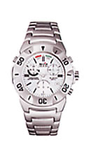 | 共通仕様 10気圧(100m)SS防水ケース(サテン仕上) スイスETAクオーツ・ムーブメント(デイト付) 逆回転防止SSベゼル ドーム型サファイアクリスタル・ガラス SSブレスレット(安全ロック付) | クロノグラフ 1/10秒・30分・積算式・スプリットタイム機能