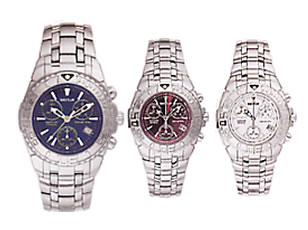 | 共通仕様 20気圧(200m)SS防水ケース(サテン仕上) スイスETAクォーツ・ムーブメント(デイト付) 逆回転防止SSベゼル 捩じ込み式SSクラウン サファイアクリスタル・ガラス 一体式SSブレスレット(安全ロック付) | クロノグラフ 1/10秒・30分・積算式・スプリットタイム機能 |