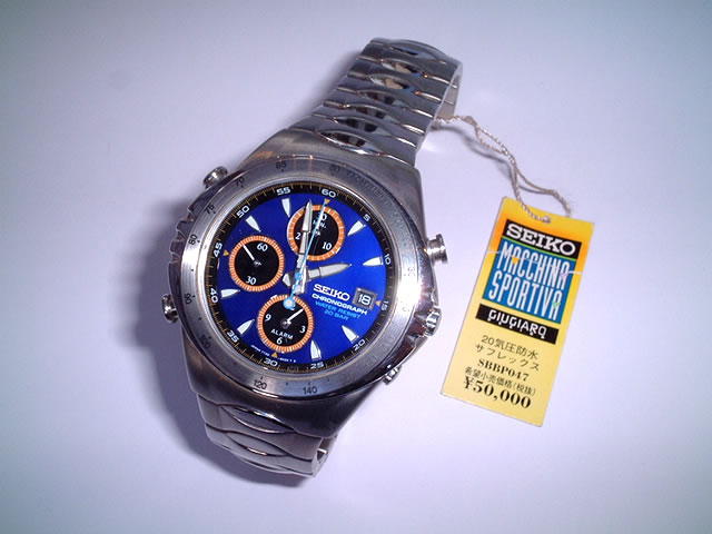 製品仕様:純チタンケース・一部硬質コーティング(ダイヤシールド) スクリューバック カーブサファイアガラス ルミブライトつき 日常生活強化防水(10気圧) 耐磁 ストップウォッチ機能(1/20秒計測 12時間計) タキメーターつき 電池寿命:約3年 精度:平均月差±15秒 シリアルナンバー 1998/2005SBHQ011 63,000円 (税抜 60,000円)