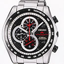 精悍な表情を醸すダイヤルには、F1マシンにも使用されているカーボン素材を採用。透明な皮膜をカーボン素材の上に積層させることで艶と奥行きを出し、プレミアム感あふれるダイヤルを実現。インデックスは、F1マシンに使用される六角ねじをモチーフにするなど、コラボレーションモデルとしてふさわしいデザインとなっている。 わずか1秒間に10回転という超高速で回転する1/100秒クロノグラフ。その動きはあまりにも速すぎるため、肉眼では捉えることはできない。しかし、スピードを競うF1の世界と同じく見る者の心を捉える。また、ひとつのパーツで3つのスモールダイヤルをつなぎ合わせるデザインは、モータースポーツカーのインパネを彷彿とさせる。視認性を高めるため、反射をおさえた無反射ブラックの塗装を施したスモールダイヤルも特筆に値する。 精緻なムーブメントを搭載するケースは、ザラツ研磨による美しいサイドビューを実現している。その姿は、まるでF1マシンのような風を切る流麗なラインをイメージさせる。また、タイヤを連想させる巨大なボタンは、1/100秒クロノグラフを確実に制御する優れた操作性とデザインが融合。このモデルには随所にF1の世界観を感じさせる演出が施されている。 SEIKOは、SUPER AGURI F1 TEAMのオフィシャルウォッチパートナーです。