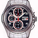ダイヤルには、F1マシンのボディーなどにも採用されている、カーボンを使用しました。さらに車のギアパーツを思わせるめっきのパーツでサブダイヤルを囲み、精密感のある精悍な表情を演出。 また、アラビア数字が欠けることのないように、敢えてバランスを変えて配置されたインデックスと視認性を高めた赤い秒針がLIMITED EDITIONにふさわしい個性を創りあげました。 タキメーターがレーザーマーキングによって施されたベゼル部には、グレーカラーの“イオンプレーティング”を採用。F1マシンのアームに近いグレーのカラーリングが引き締まった表情を醸す、高い質感を実現しました。 F1マシンのホイールをイメージした斬新なデザインの裏ぶたには、“B・A・R Honda”のロゴマークと、0001/2005〜2005/2005までの、世界にひとつしかないシリアルナンバーがレーザーマーキングによって施されています。また、“B・A・R Honda”のピンバッジつき専用ボックスが、より、プレミアム性を高めます。 SEIKOは、B・A・R Hondaと佐藤琢磨選手をサポートしています。